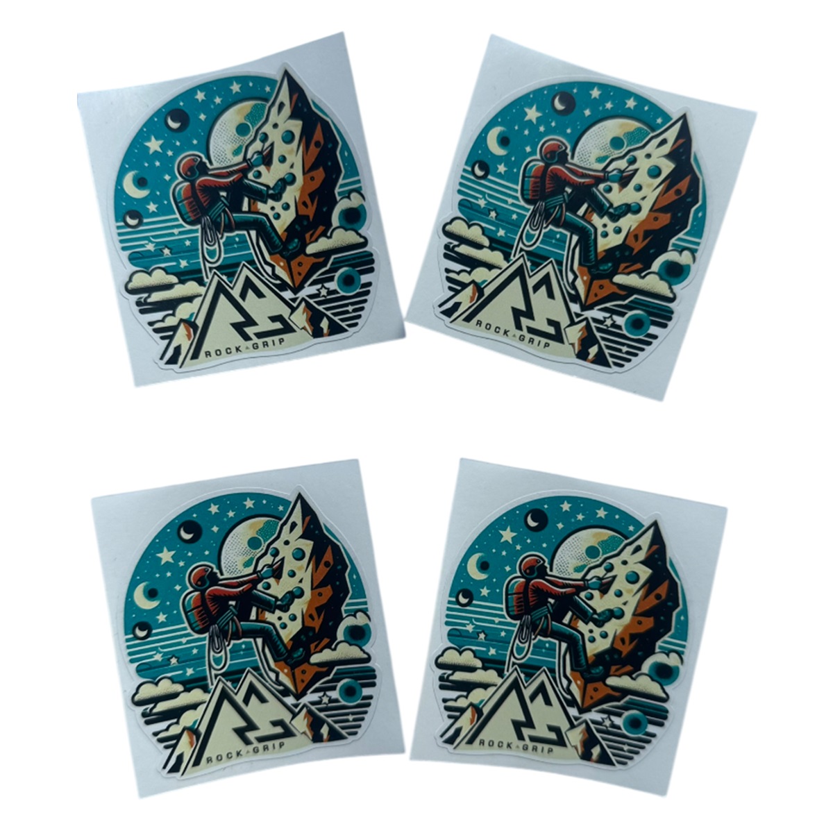 Este adesivo único traz a imagem de um astronauta escalador enfrentando o desafio de escalar um meteoro no espaço sideral.