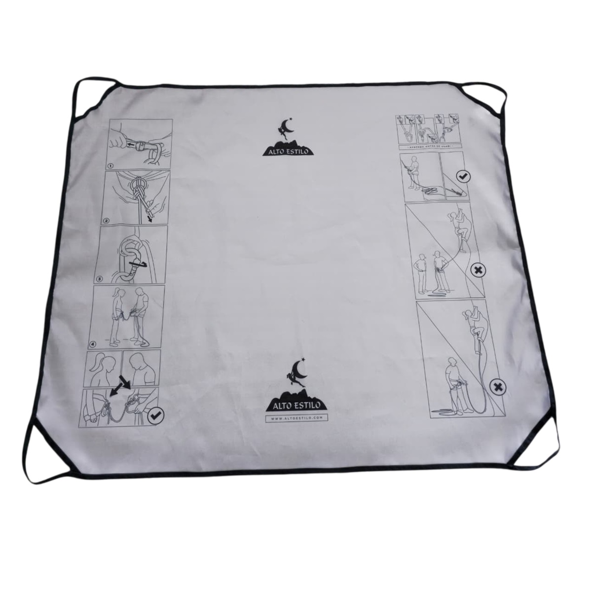 Com alças nas quatro pontas, facilita o transporte da corda para diferentes bases de escalada, garantindo máxima comodidade em suas aventuras.